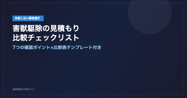 「害獣駆除の見積もりを取ったけど、この金額は適正?」「何を比較すればいい?」——害獣駆除で失敗しないためには、複数の業者から見積もりを取り、正しいポイントで比較…