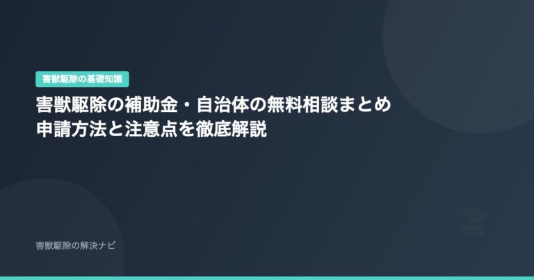害獣駆除の基礎知識 害獣駆除の補助金・自治体の無料相談まとめ|申請方法と注意点を徹底解説 📅 2026年2月12日 「害獣駆除って自治体から補助金が出るの?」「無料で駆除してもらえるケースはある?」——害獣被害に遭ったとき、自治体の補助金や無料相談を活用すれば費用を大幅に抑え…