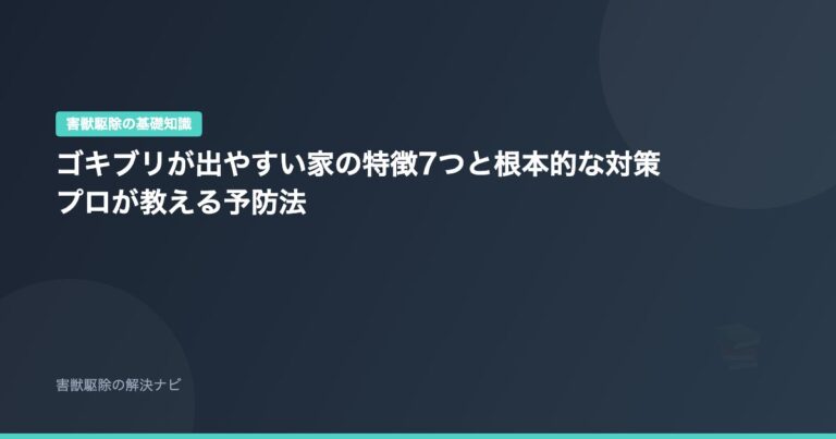 害獣駆除の基礎知識 ゴキブリが出やすい家の特徴7つと根本的な対策|プロが教える予防法 📅 2026年2月12日 「なぜうちだけゴキブリが出るの?」「どんな対策をしても出てくる」——ゴキブリが出やすい家には共通する特徴があります。その原因を知って対策すれば、ゴキブリの発生を…
