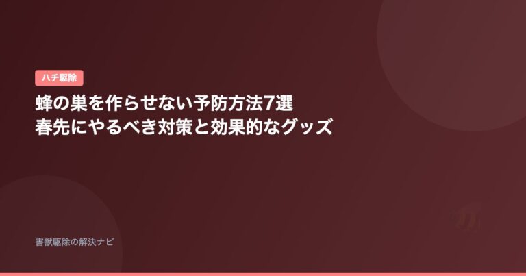 ハチ駆除 蜂の巣を作らせない予防方法7選|春先にやるべき対策と効果的なグッズ 📅 2026年2月12日 「毎年同じ場所に蜂の巣ができる」「駆除したのにまた巣を作られた」——蜂の巣は予防対策をしないと毎年同じ場所に作られます。駆除後の予防こそが最も重要なステップです…