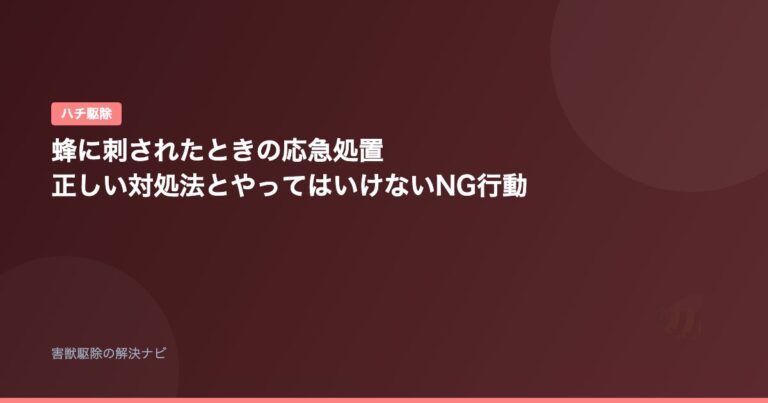 ハチ駆除 蜂に刺されたときの応急処置|正しい対処法とやってはいけないNG行動 📅 2026年2月12日 「蜂に刺された!どうすればいい?」——蜂に刺されたときは正しい応急処置を素早く行うことが重要です。特に2回目以降の刺傷では、命に関わるアナフィラキシーショックの…