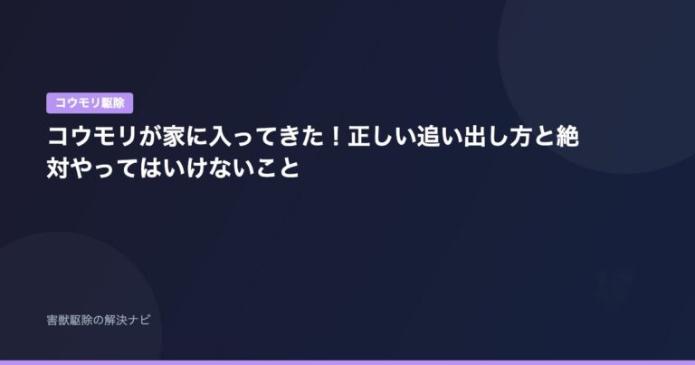 コウモリ駆除 コウモリが家に入ってきた!正しい追い出し方と絶対やってはいけないこと 📅 2026年2月12日 「部屋の中をコウモリが飛び回っている!」「夜、突然コウモリが家に入ってきた!」——パニックになる気持ちはわかりますが、落ち着いて正しい方法で追い出すことが大切で…