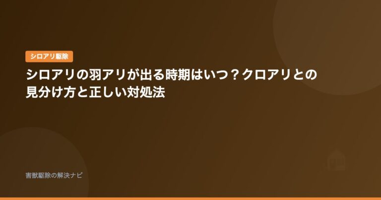 シロアリ駆除 シロアリの羽アリが出る時期はいつ?クロアリとの見分け方と正しい対処法 📅 2026年2月12日 「家の中に羽のついたアリが大量発生した」「窓際に透明な羽が落ちている」——それはシロアリの羽アリかもしれません。シロアリの羽アリが室内で見つかった場合、すでに床…