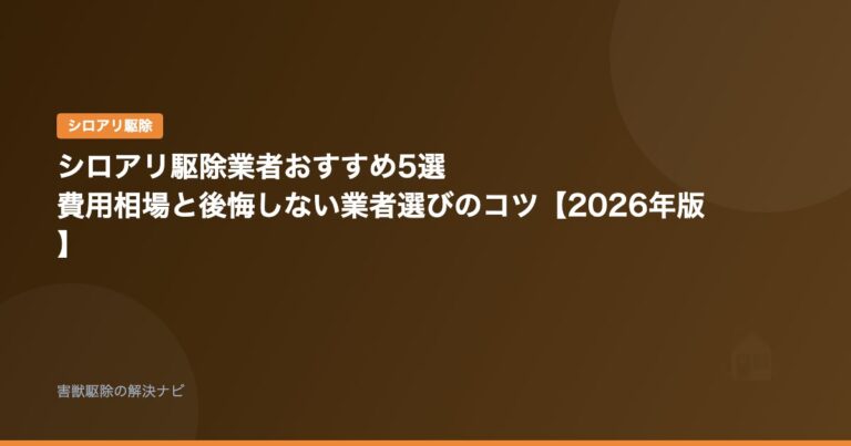シロアリ駆除 シロアリ駆除業者おすすめ5選|費用相場と後悔しない業者選びのコツ【2026年版】 📅 2026年2月12日 「床がブカブカする」「壁に小さな穴が開いている」「羽アリが大量に出てきた」——これらはシロアリ被害のサインかもしれません。シロアリは目に見えない場所で家の構造材…