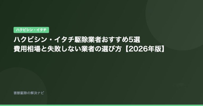 ハクビシン・イタチ ハクビシン・イタチ駆除業者おすすめ5選|費用相場と失敗しない業者の選び方【2026年版】 📅 2026年2月13日 「天井裏でドタドタ走り回る音がする」「屋根裏に獣臭い糞が大量にある」——ハクビシンやイタチが住みついた場合、放置するほど被害は拡大し、駆除費用も膨らみます。 ハ…