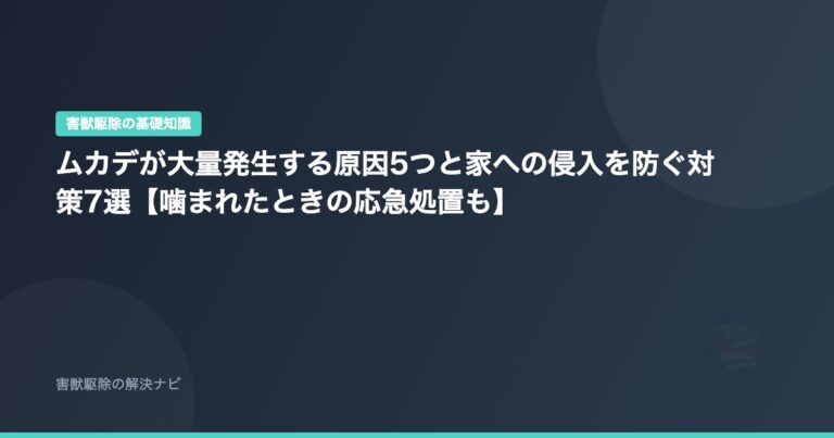 害獣駆除の基礎知識 ムカデが大量発生する原因5つと家への侵入を防ぐ対策7選【噛まれたときの応急処置も】 📅 2026年2月12日 「家の中にムカデが何匹も出る…」「お風呂場や玄関で毎日のようにムカデを見かける」——梅雨から夏にかけて、ムカデの大量発生に悩まされる家庭は少なくありません。 ム…